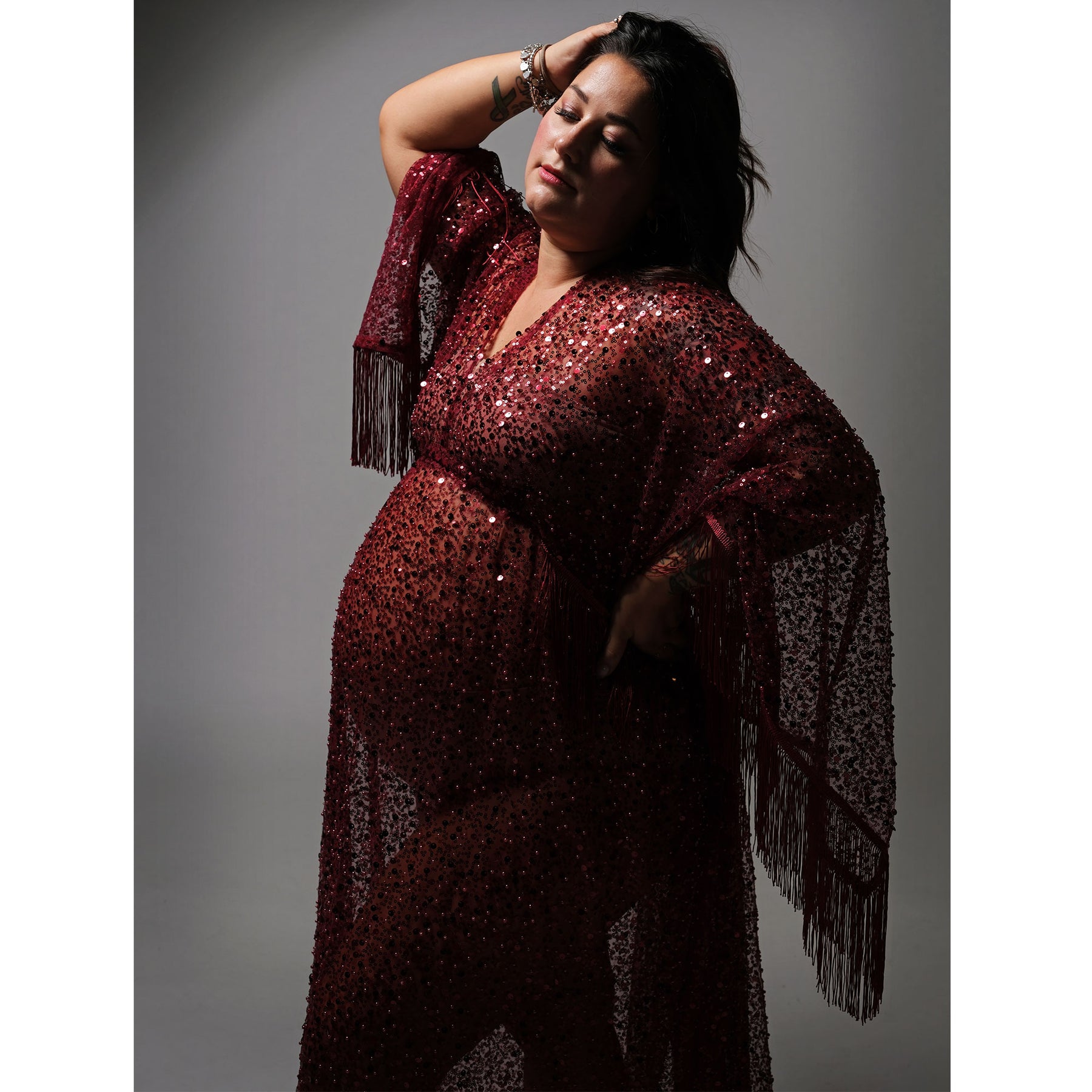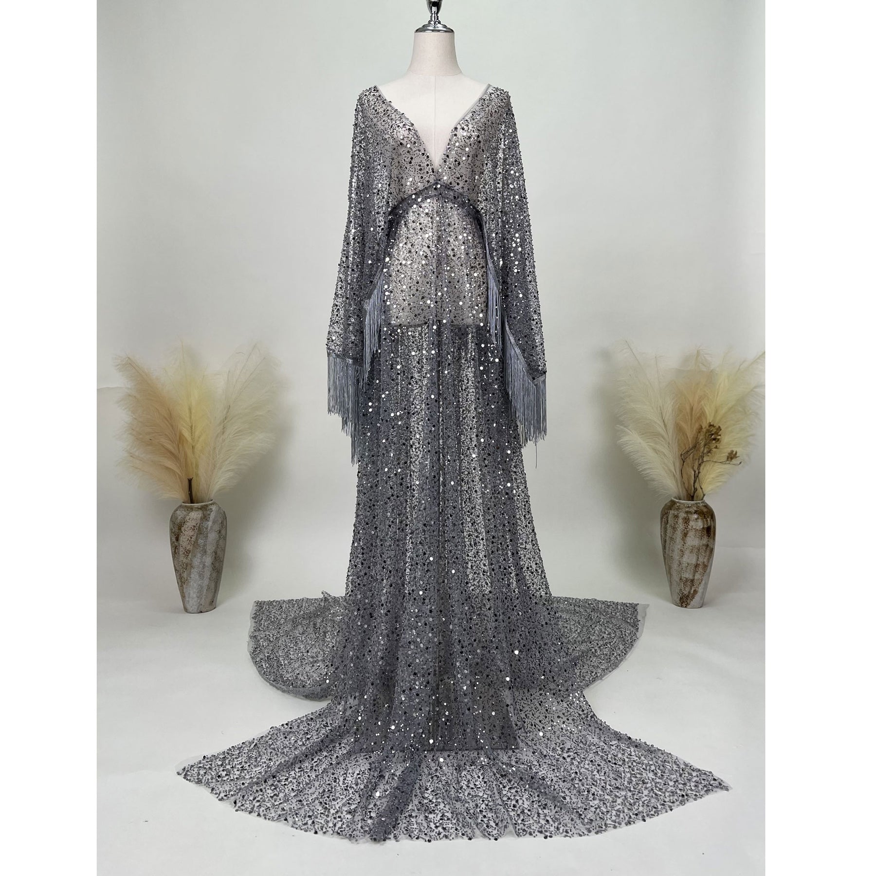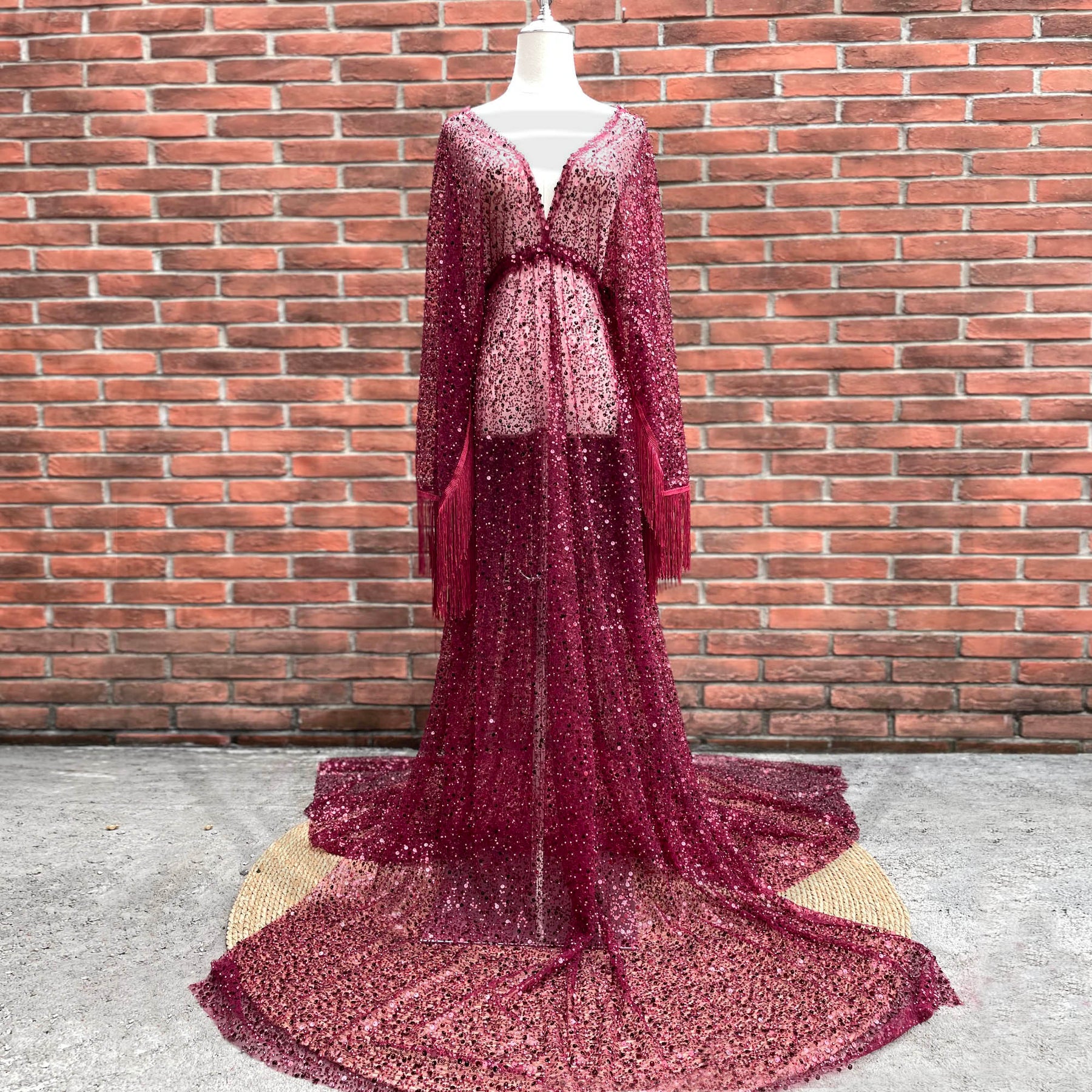 Product name: Christmas Free Size Boho V-neck Long Sleeves Sequence Dress Maternity Gown Photography Dress Party Dresses Baby Shower Photo Props Kaftan Robe Maternity Couture Pregnancy Clothes for Woman Photo Shoot with Embroidery Pearl