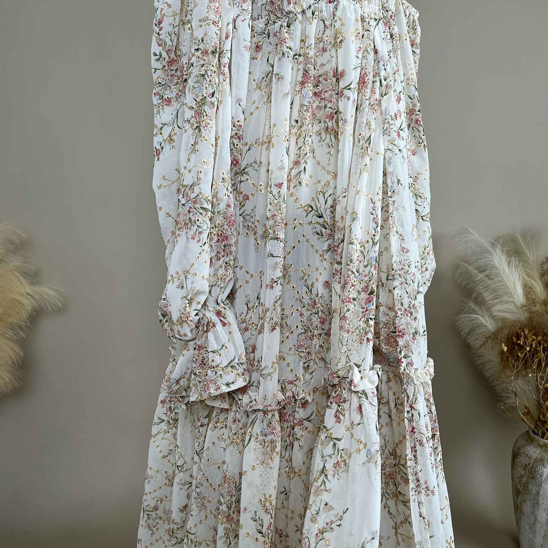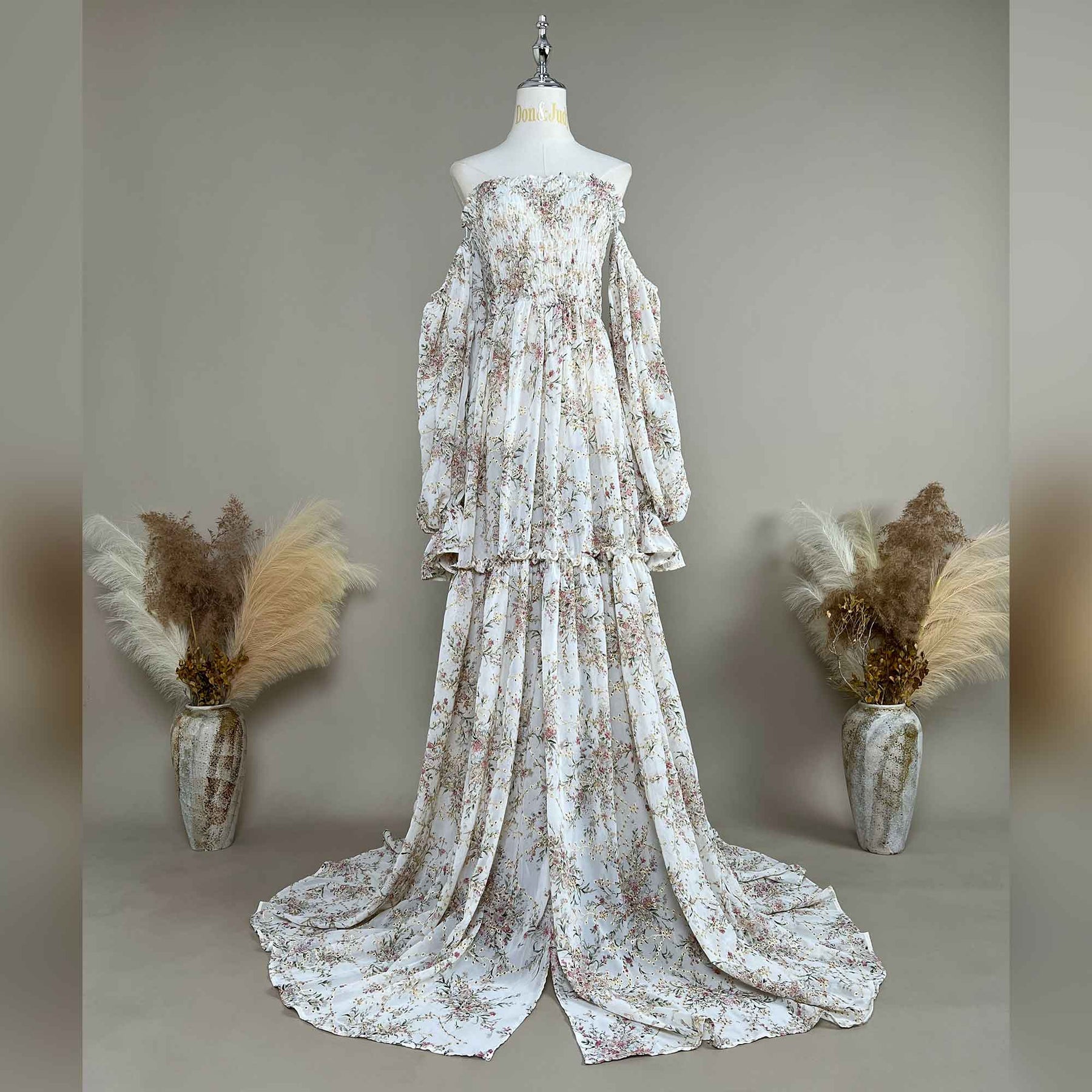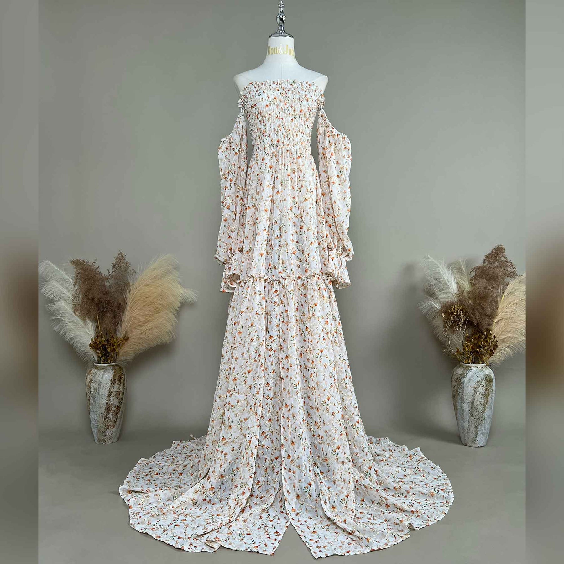 Product name: Floral Chiffon Strapless Long-sleeved Front Slit Maternity or Non-maternity Dresses for Photography Props Baby Shower Photo Props